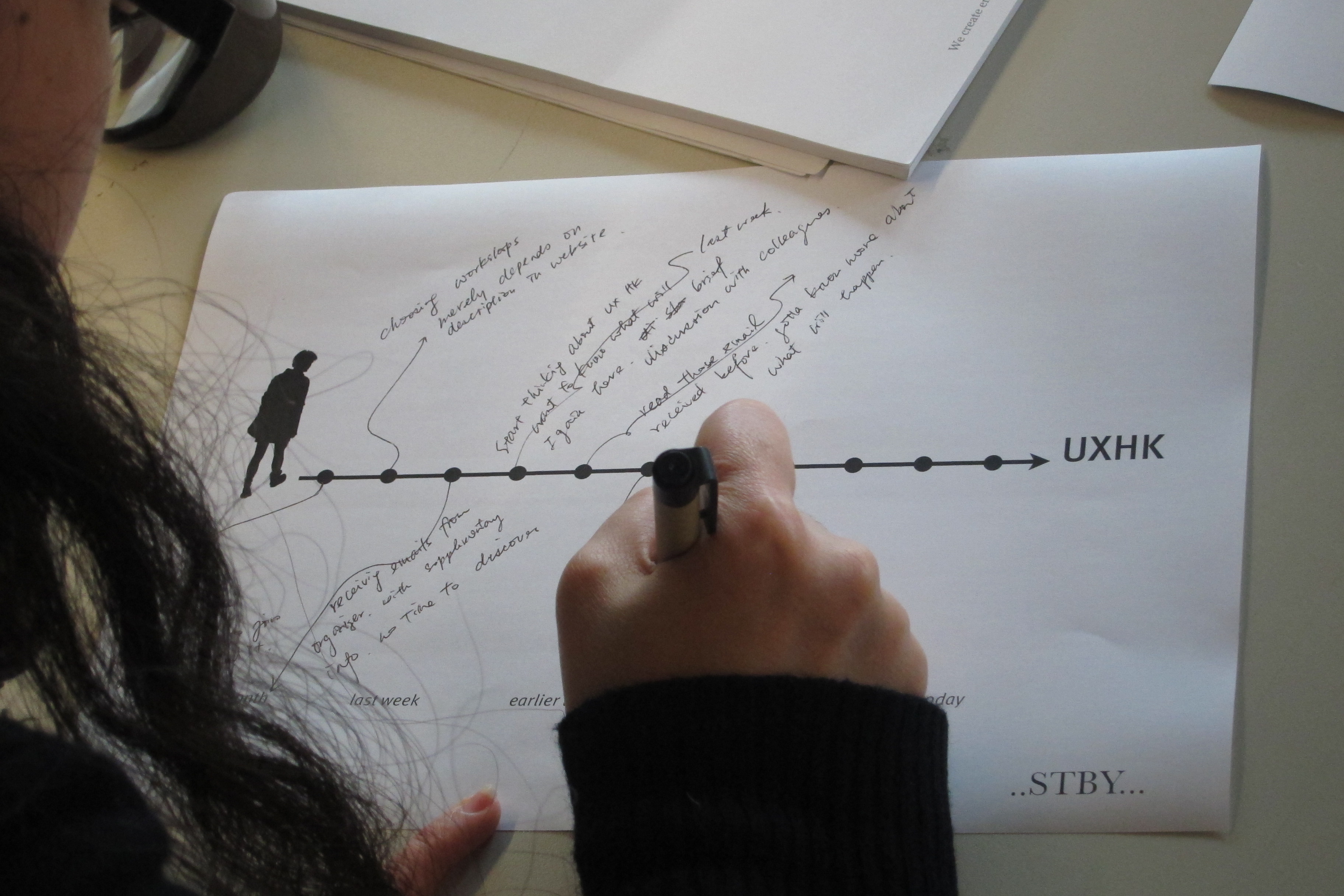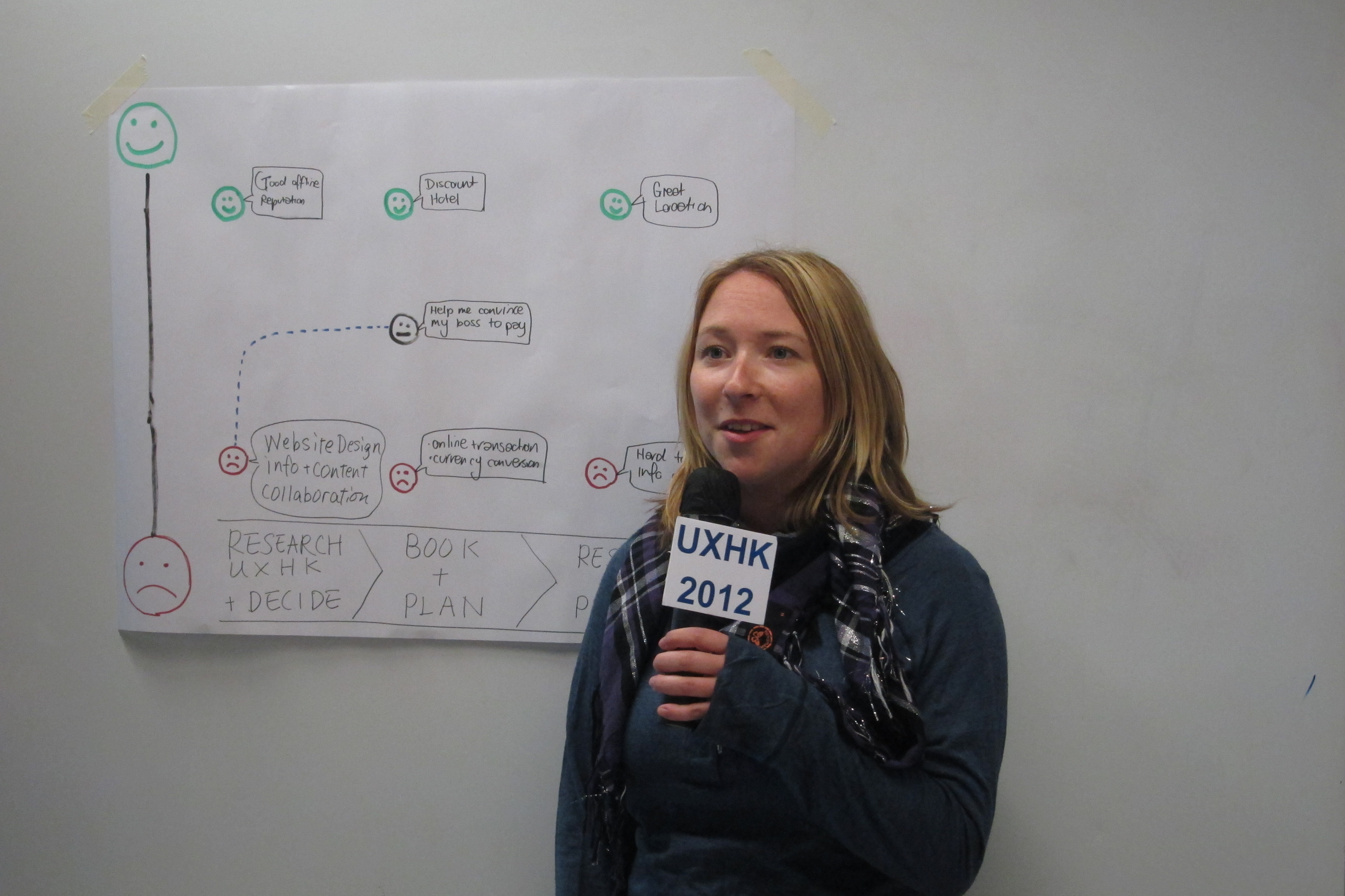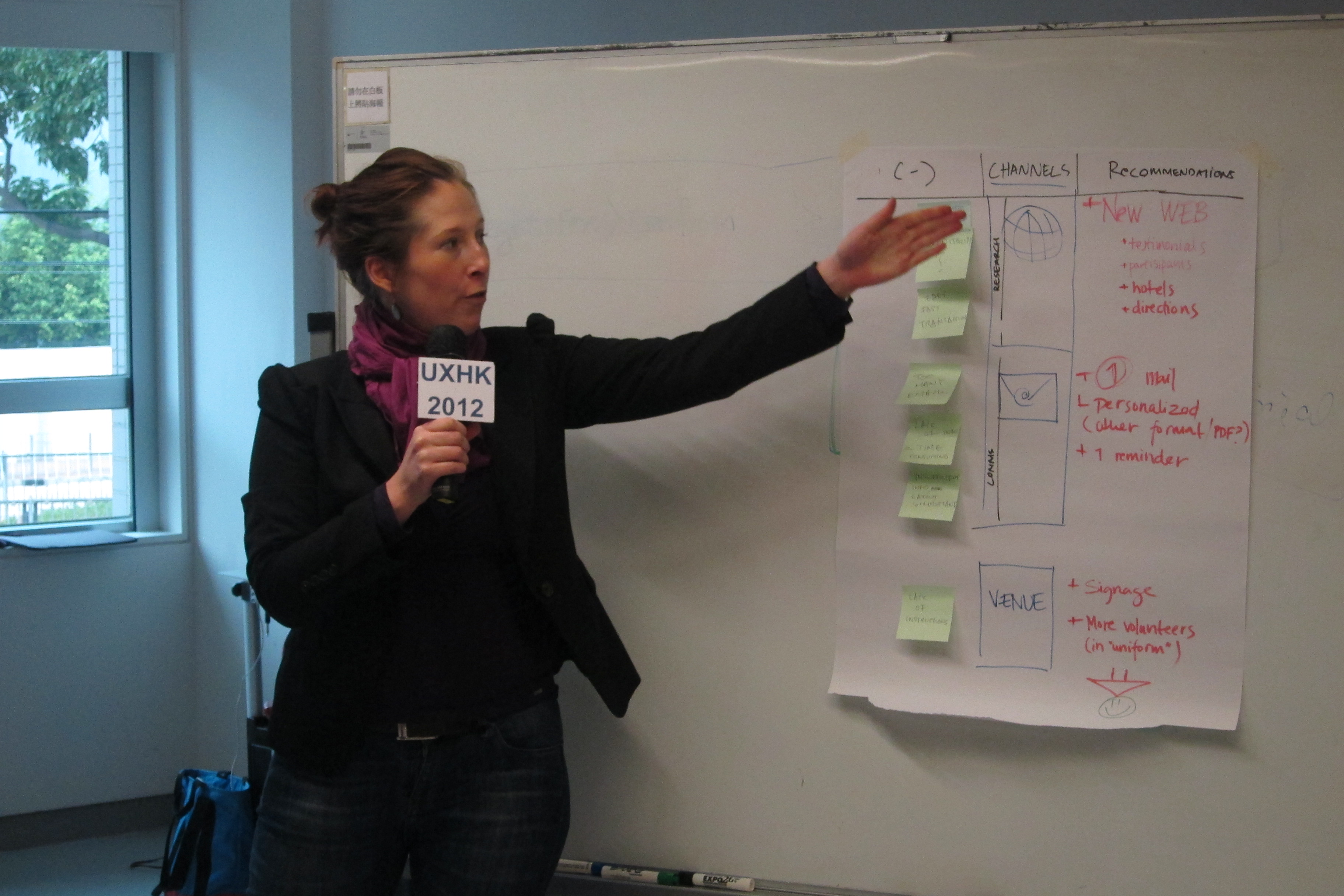 Geke’s talk at UX Hong Kong was on ‘Service Design: Co-production at the moment of thruth’, and the subsequent workshop was on ‘Multi-channel Customer Journeys: Connecting the touch points’. Also here the group of 80 participants were very engaged. In the course of 4 hours they worked on a series of exercises that helped them to map and analyse a series of customer journeys to come up with a visualisation that explained their insights and advises to innovate the service experience.