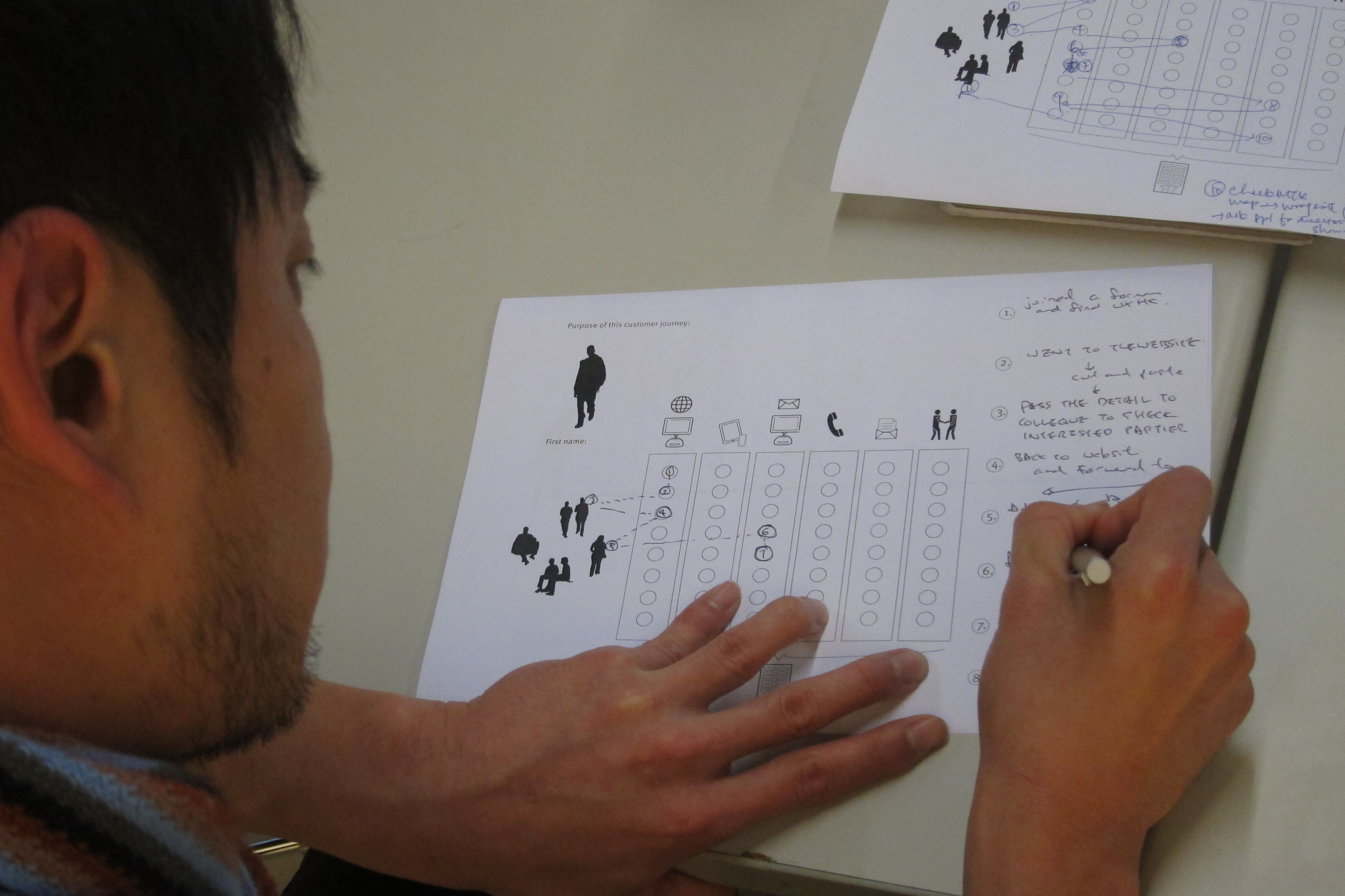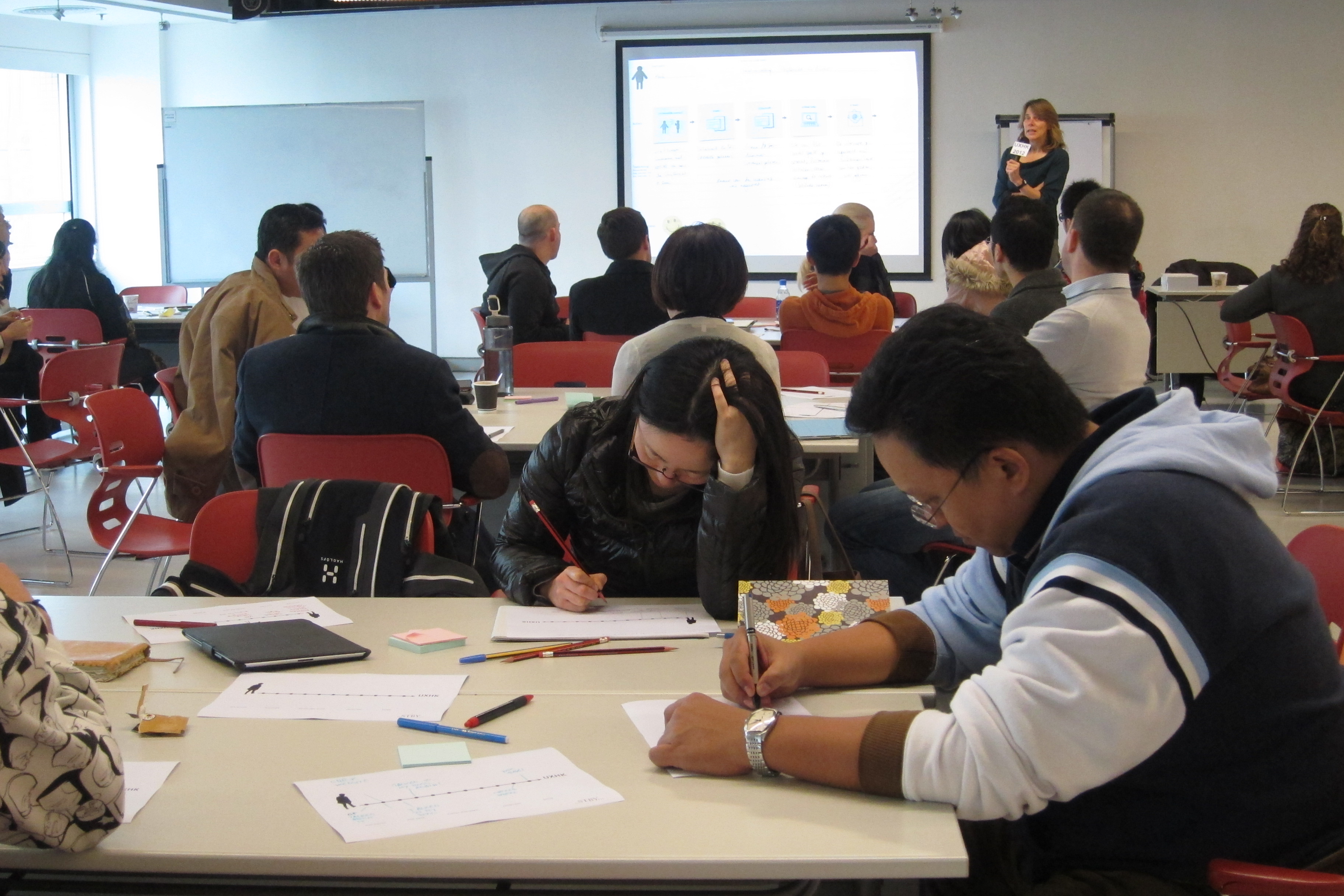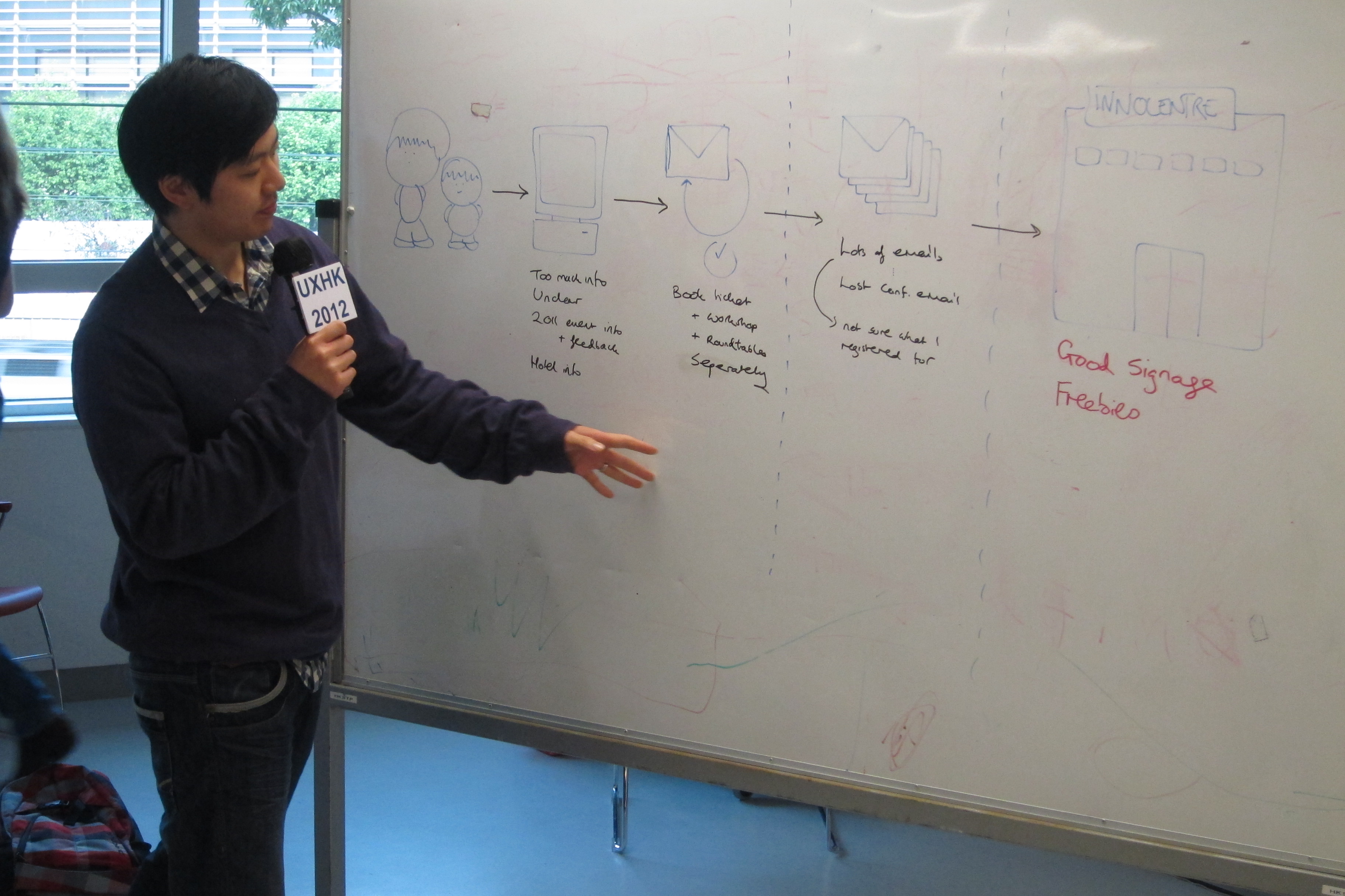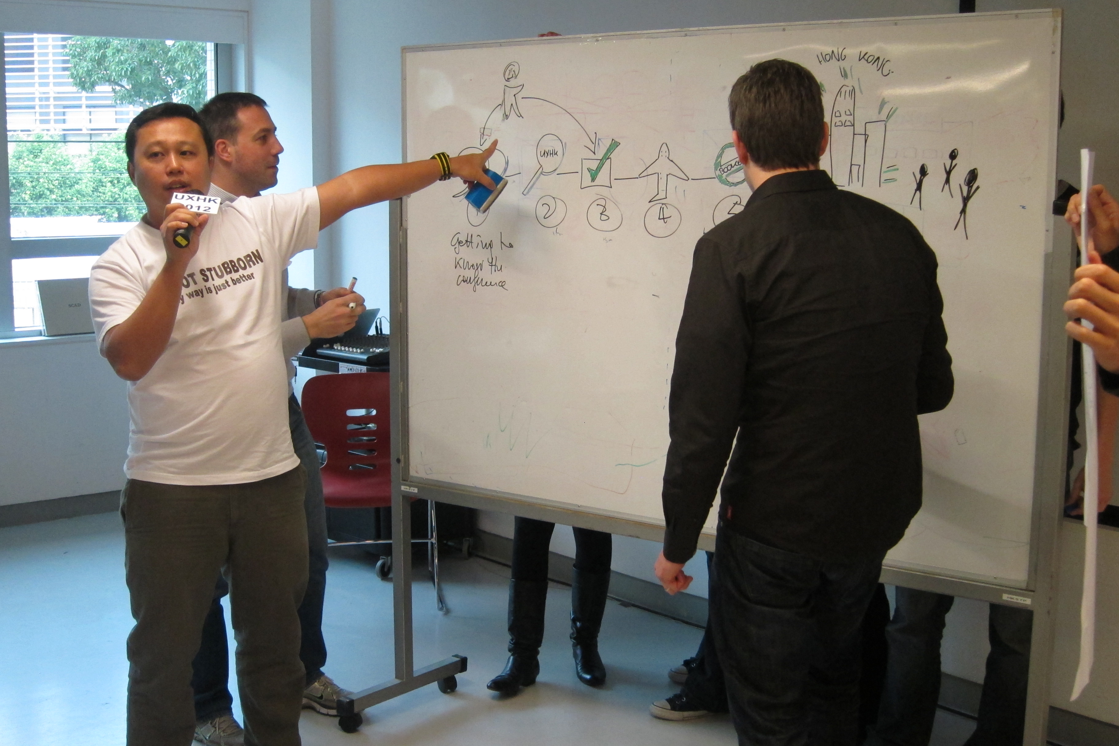 Geke’s talk at UX Hong Kong was on ‘Service Design: Co-production at the moment of thruth’, and the subsequent workshop was on ‘Multi-channel Customer Journeys: Connecting the touch points’. Also here the group of 80 participants were very engaged. In the course of 4 hours they worked on a series of exercises that helped them to map and analyse a series of customer journeys to come up with a visualisation that explained their insights and advises to innovate the service experience.