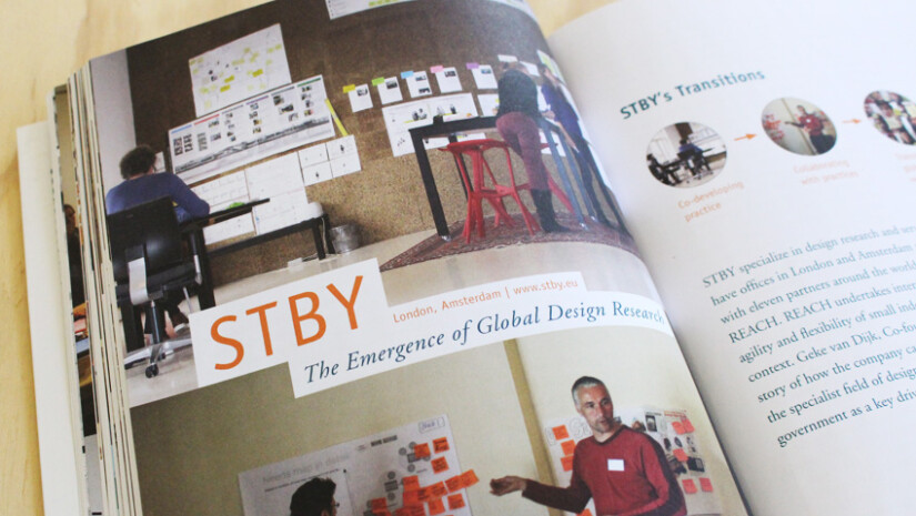 A new book that features our work was recently launched: ‘Design Transitions’ by Joyce Yee, Emma Jefferies and Lauren Tan. This book presents a series of stories on how design is changing around the world. From small practices to vast corporations, the renowned to the lesser known: the authors collected the stories of people working at the fringes of the traditional disciplines of design. They have interviewed people in 12 countries around the world, who represent 3 different communities: design agencies, organisations embedding design, and design academics. STBY is one of these agencies. Design Transitions is published by BIS Publishers and can be ordered from their website (www.bispublishers.nl).