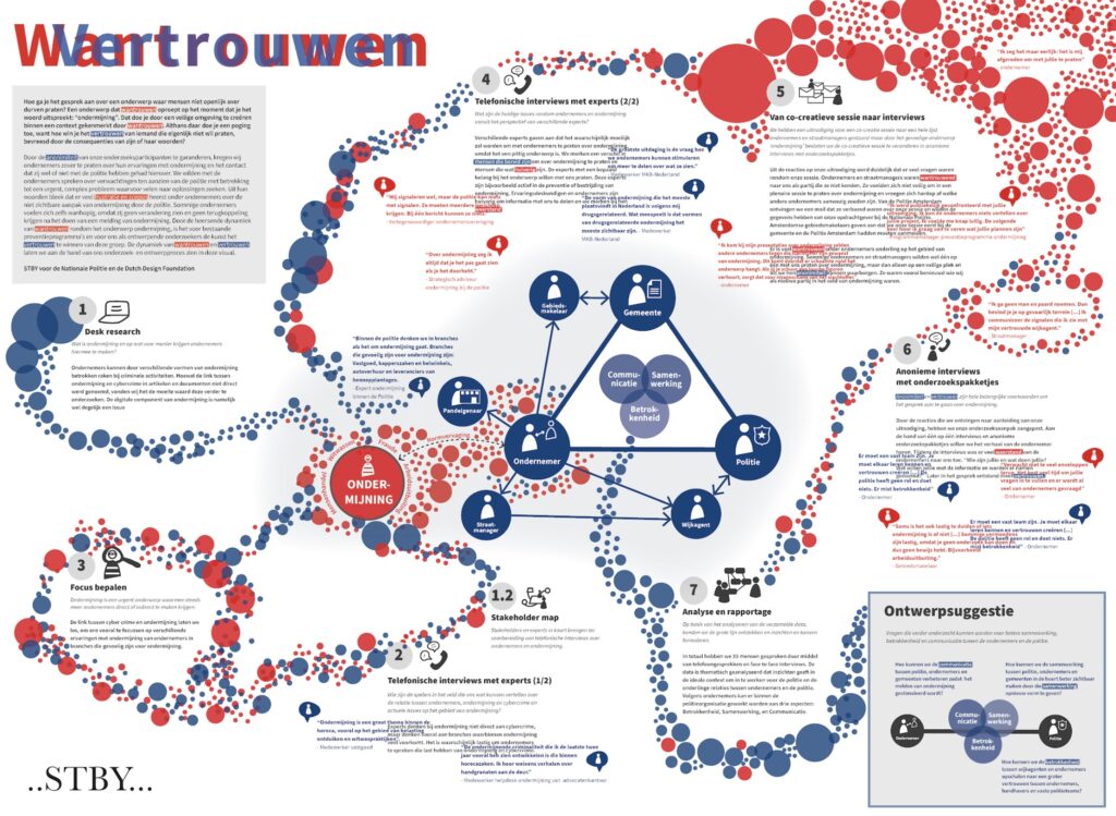 STBY was asked by the Dutch Design Foundation and the National Police to conduct research into the expectations of companies and entrepreneurs who have (regular) contact with the police following incidents (online and offline) related to undermining. Undermining is a catch-all concept that is used to describe the mixing of the underworld and the upper world. Criminals use legal services to carry out illegal activities, such as money laundering, fraud, or drug trafficking and production.