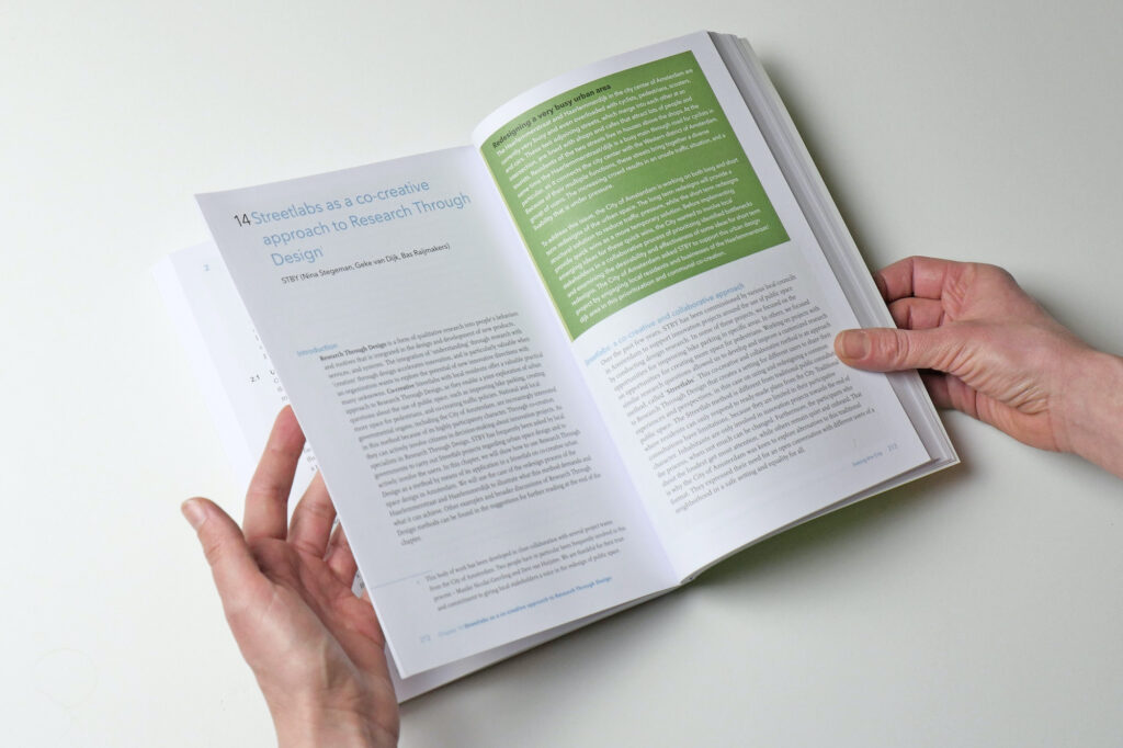 STBY contributed to the book by writing the chapter ‘Streetlabs as a co-creative approach to Research Through Design’. As specialists in Research Through Design, we are frequently asked by local governments to carry out Streetlab projects regarding urban space design and to actively involve the users. In this chapter, we show how to use Research Through Design as a method by means of its application in a Streetlab on co-creative urban space design in Amsterdam. We are using the case of the redesign process of the Haarlemmerstraat and Haarlemmerdijk in Amsterdam to illustrate what this method demands and what it can achieve.