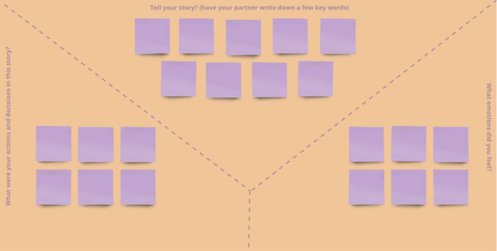 - The empathy map we created to help people reflect on past or present challenging moments and understand the role of their actions and emotions in these situations. This facilitates personal development on the level of emotional literacy in the workplace.