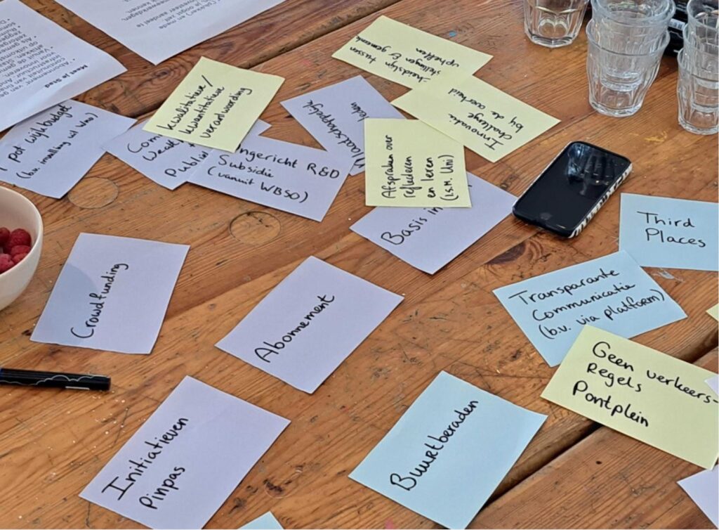 We first investigated various social initiatives in the Netherlands, in various domains, such as food and energy. Several interviews were conducted with experts and stakeholders in public civic partnerships, using service design tools, like stakeholder maps. Analysing this data showed that learning to better work together based on shared values is key to success in public-civic partnerships. Various blog posts on this topic were published by Waag.