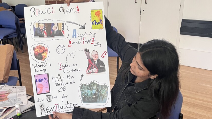 At least 30 minutes were needed before deeper flow began. Reimagination cannot be rushed. Collage was powerful because it slowed people down, encouraged play and pushed their thinking for alternate realities. For many, tearing and reassembling fragments became an act of rebellion – a way to rebuild new stories from broken systems.